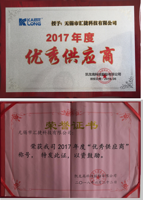 匯捷科技與凱龍高科已建立友好業務關系長達12年,此次獲得“優秀供應商”稱號,我司將進一步完善與發展自身開發、生產、物流配送等方面,進一步提升產品研發能力和企業管理,繼續盡全力滿足客戶對于產品的需求,創建產品的美譽度和影響力,竭誠為與廣大客戶建立長期穩定、互利共贏的良好合作創造條件。