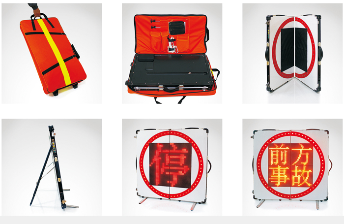 YJ-6型便攜式可折疊LED顯示屏YJ-6型便攜式可折疊LED顯示屏是根據公安部2013年1月1日頒布實施的《道路交通事故安全防護規范》(GA/ T1044.-2012)研制生產,用于道路的臨時警示、變道導向、限速的主動發光交通事故現場警示標志。